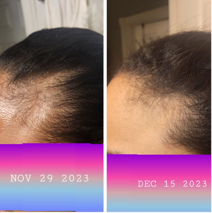 One of my girl friends actually recommended this to me because it worked wonders on her hair thickness, so l decided to give it a try. After only 1 and a half months, my hair is so much more dense, especially towards the center where I had more hair loss before. My hair has stopped falling out in clumps when I touch it. Honestly, | 100% recommend it for everyone who wants to stop their hairloss and regrow fuller and thicker hair. As a bonus to the hair growth, my hair and scalp are also more healthy and moisturized.